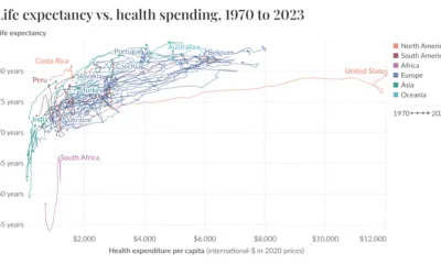 Comparing life expectancy and healthcare spending shows why the U.S. is a global outlier—and why more spending doesn’t guarantee longer lives.