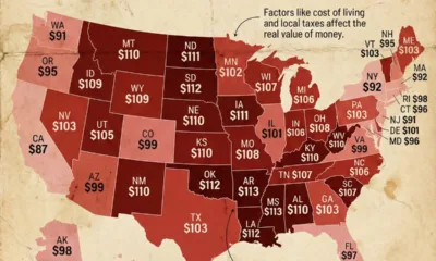 Is a dollar in your pocket worth the same in Albuquerque as it is in New York City? We show the real purchasing power of $100...